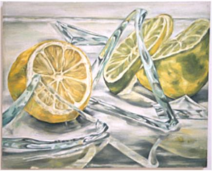 Glas und Zitronen Tempera auf Leinwand 80 x 100 cm1986